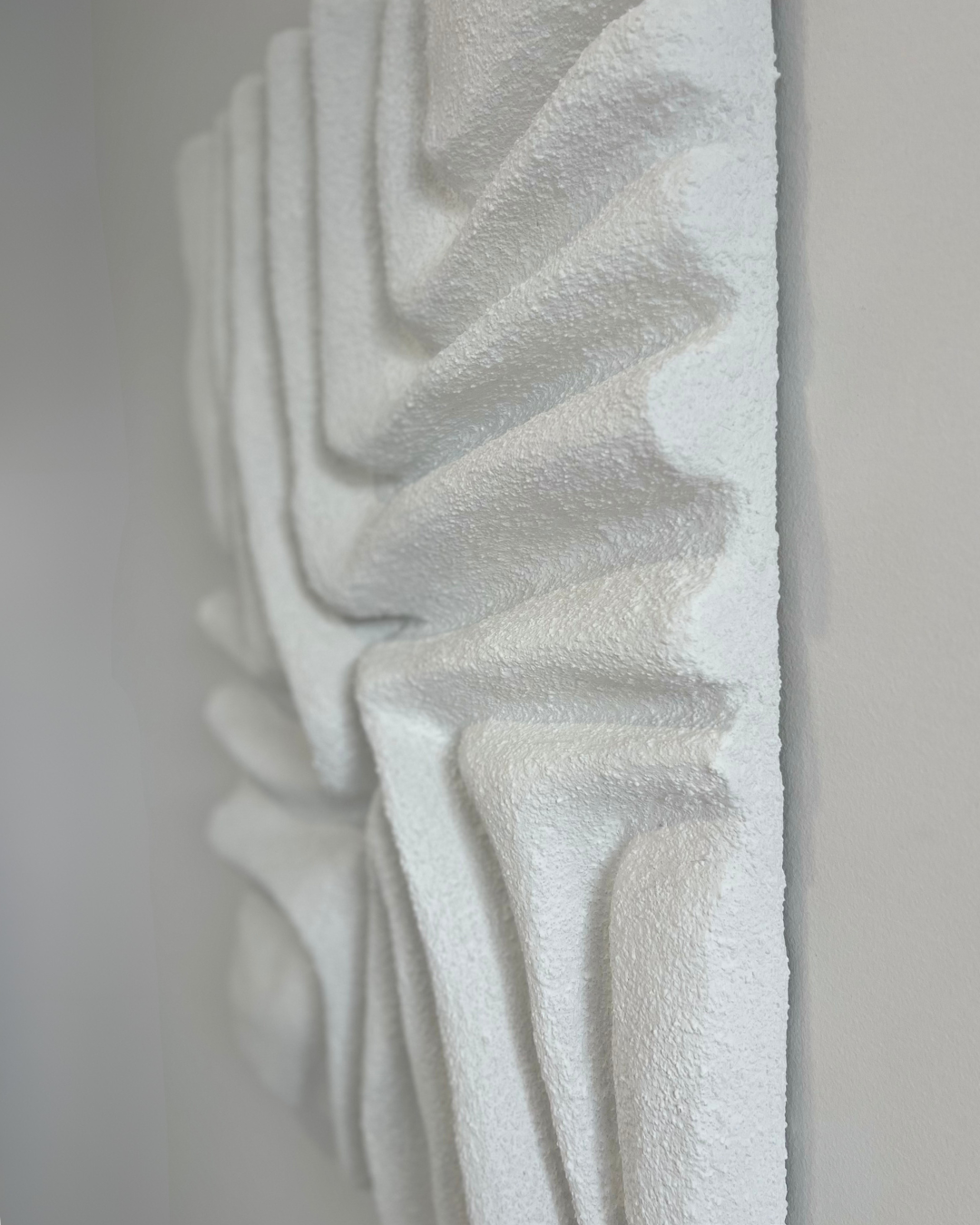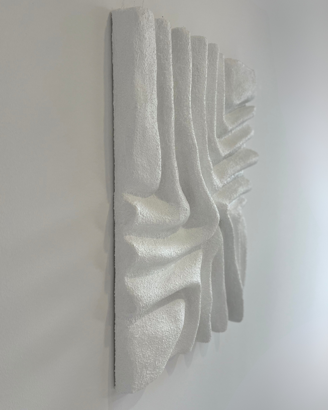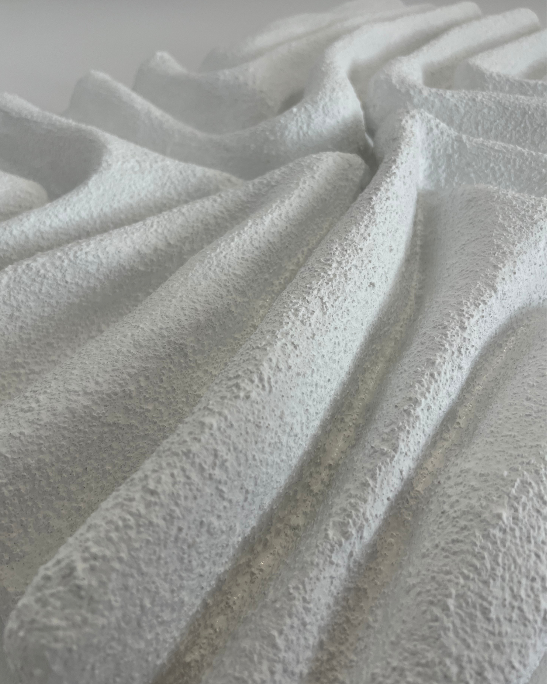 | MATERIAŁY | włoskie płótno bawełniane, krosno sosnowe, autorska mieszanka gipsów, ręcznie gięty stelaż ze stali nierdzewnej |
