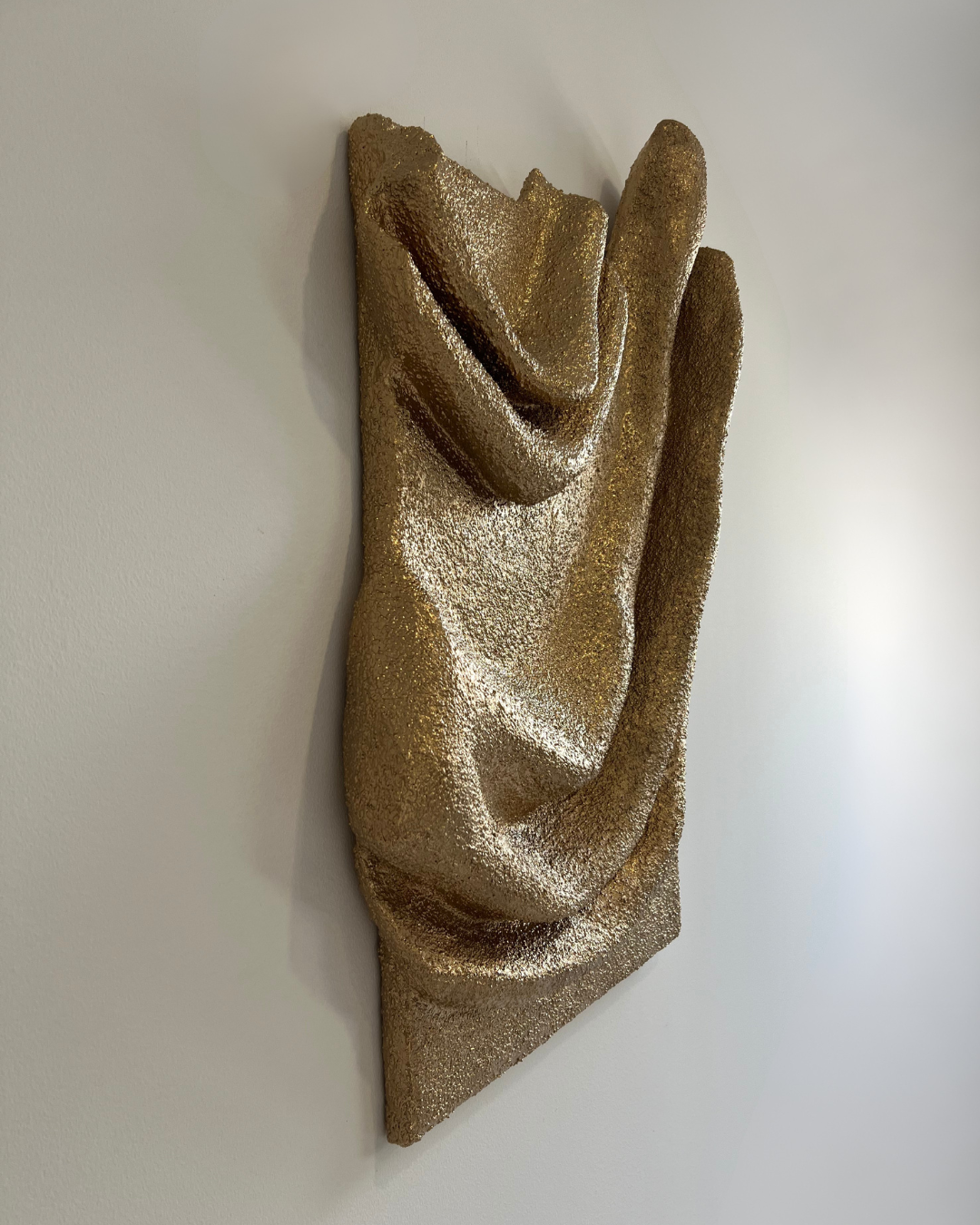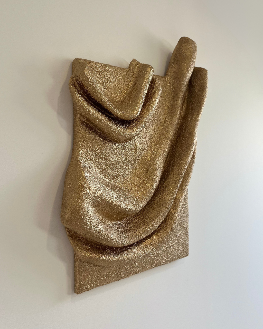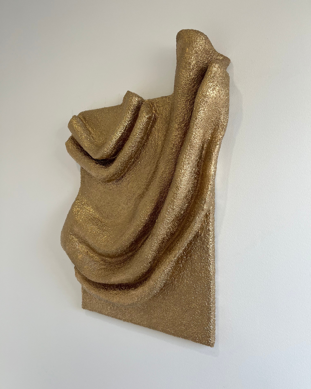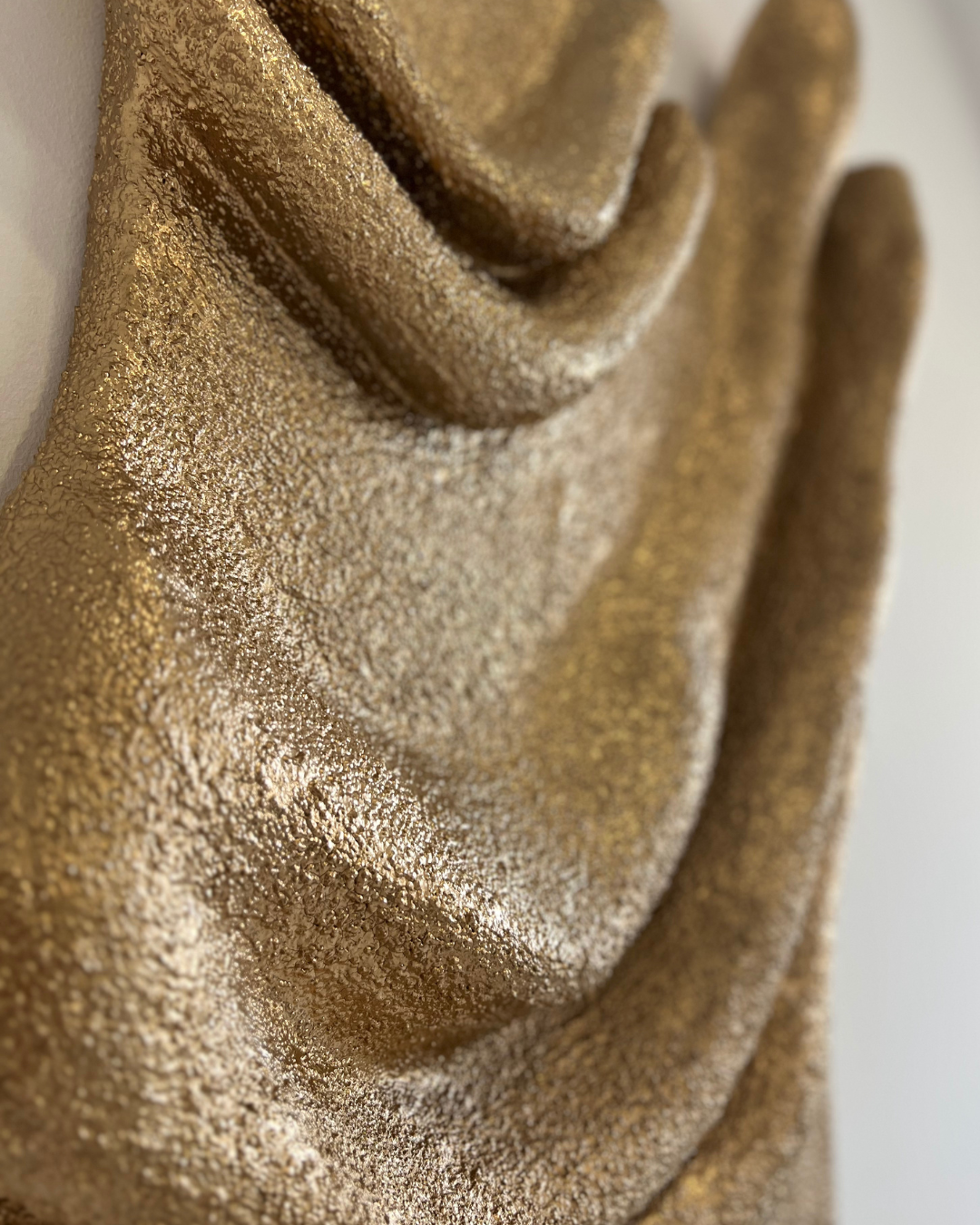 | MATERIAŁY | włoskie płótno bawełniane, krosno sosnowe, autorska mieszanka gipsów, ręcznie gięty stelaż ze stali nierdzewnej |